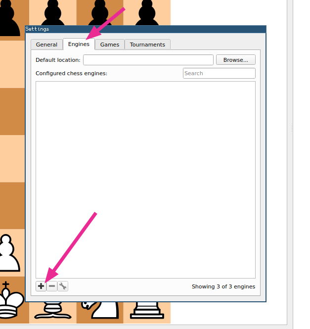 - In the window that appeared, select “Engines” tab, and then click “➕” to add a new engine: